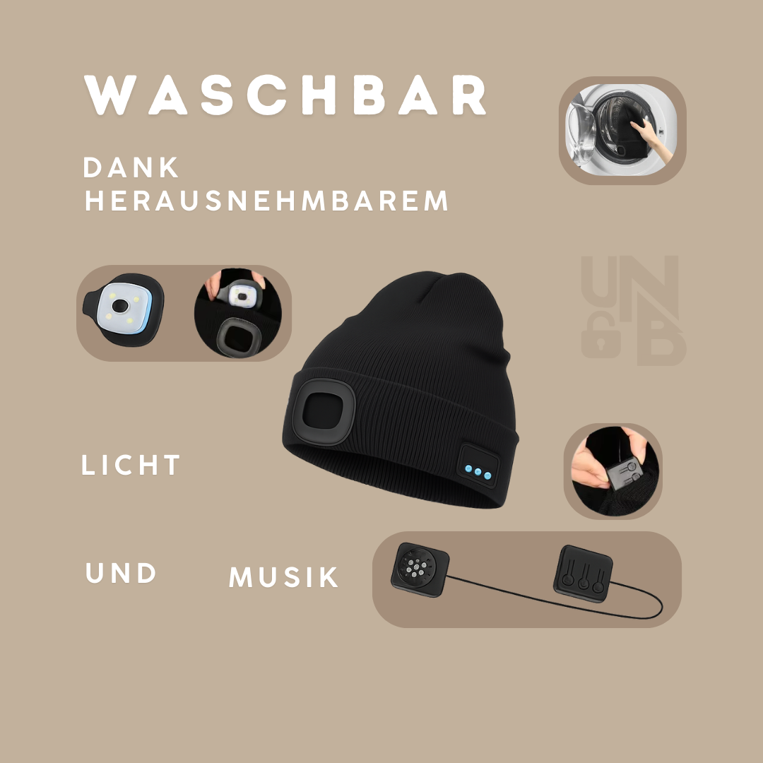 Ja, da sowohl die Lampe als auch die Lautsprecher herausnehmbar sind, kann man die Mütze ganz normal bei 40 Grad waschen. Ob von Hand oder in der Waschmaschine, spielt dabei keine Rolle.